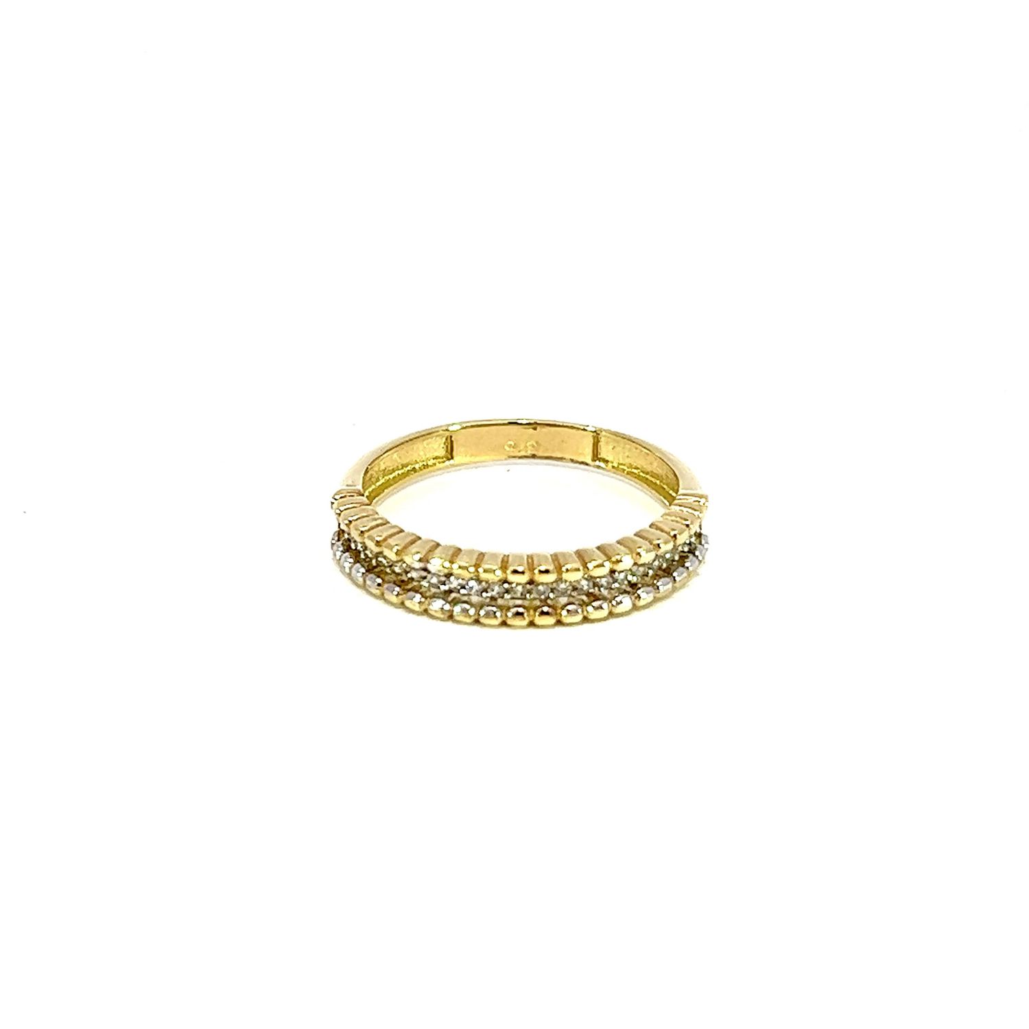 Ring vervaardigd uit anti-allergisch 9kt goud met zuivere Zirconia steentjes.